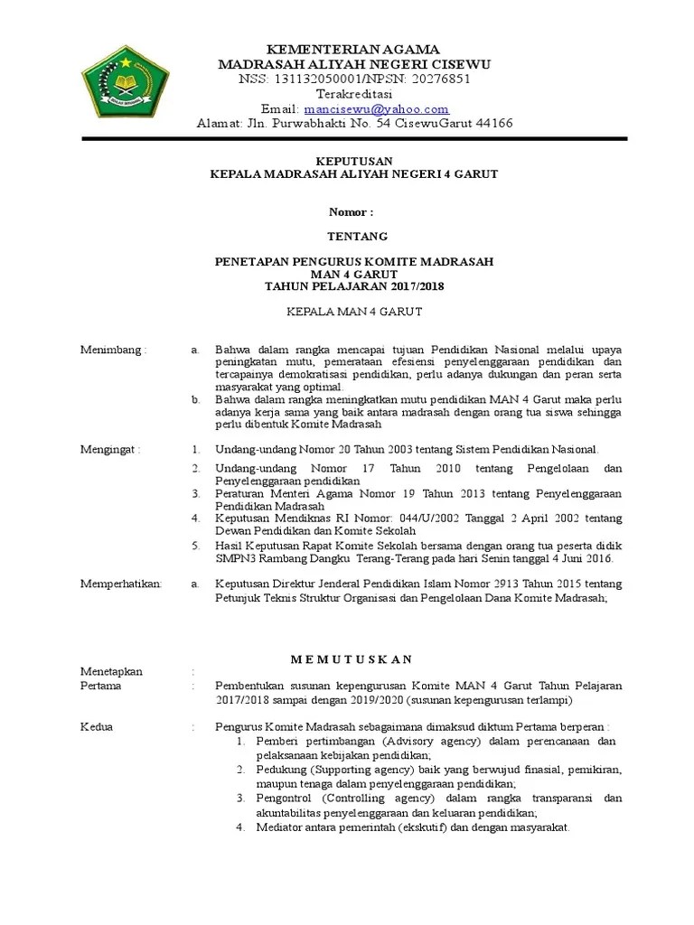 Contoh surat keputusan komite sekolah untuk sd, smp, atau sma dalam format word.