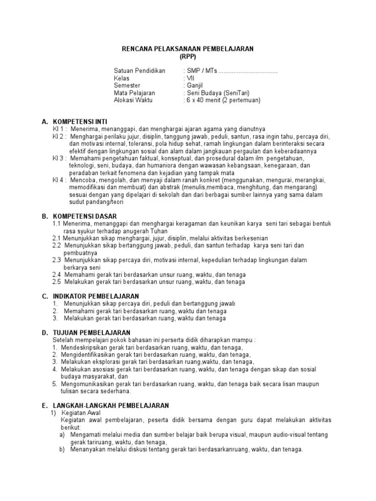 Top pdf rpp seni budaya kelas 7 kurikulum 2013 revisi 2016 smp/mts rpp tari vii.2.1 dikompilasi oleh 123dok.com. Download file format docx microsoft word dan pdf. Rpp seni budaya kelas 8 kurikulum 2013 revisi 2020 format 1 lembar. 29 downloads 1144 views 63kb size. Rpp seni budaya kelas 7 8 9 smp/mts kurikulum 2013 (k13) memuat 4 aspek seni yakni seni musik, seni tari, seni rupa dan seni teater.